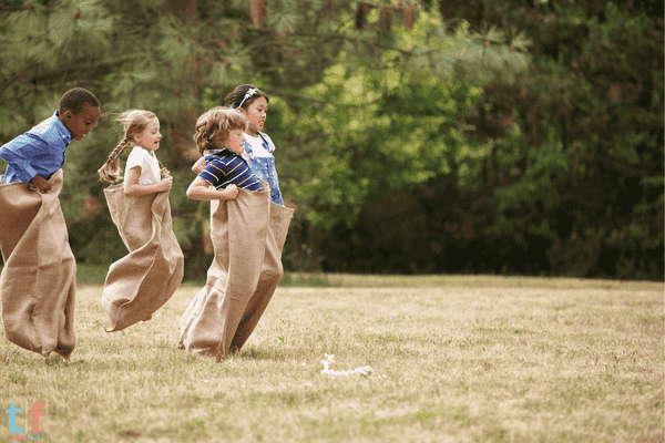 Each participant steps inside a sack and hops toward the finish line. Add obstacles or challenges like jumping over cones or spinning in a circle mid-race to make it more exciting.